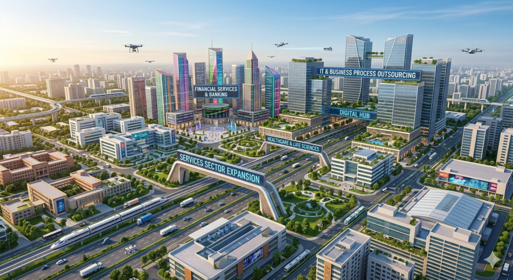 India’s growth story is no longer only about farms and factories. Today, the real change is happening in offices, hospitals, classrooms, hotels, banks, digital platforms, and online services. This change is called services sector expansion.
