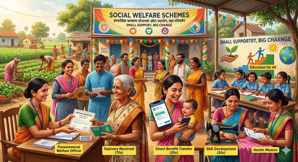 Imagine a family that does not have enough money for food or education. Without any support, their situation may never improve. This is where social welfare schemes play an important role.