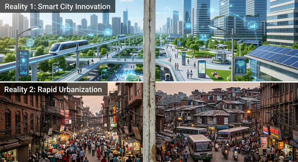 Both are citizens of the same city, yet their experiences are completely different. This contrast defines the reality of urbanization in India. Cities are growing, but not everyone is growing with them. This is why the idea of smart cities has become important, not just to make cities modern, but to make them fair and livable.